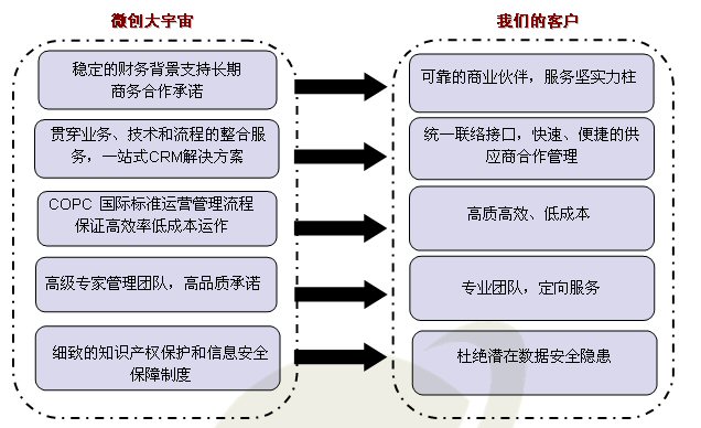 依托于兩大成功企業(yè)背景平臺,微創(chuàng)大宇宙從組建伊始即擁有微創(chuàng)軟件的專業(yè)技術(shù)支持能力、強大技術(shù)開發(fā)實力加之transcosmos的成熟流程運營體系、豐富行業(yè)實踐經(jīng)驗及雙方堅實行業(yè)背景,是微創(chuàng)大宇宙一躍成為目前中國呼叫中心外包領(lǐng)域成長最快的企業(yè)。