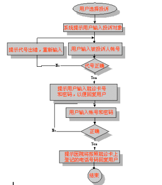 在處理用戶投訴時(shí),要求對(duì)醫(yī)院所有服務(wù)人員分配代碼。用戶投訴時(shí)按照服務(wù)代碼進(jìn)行投訴。同時(shí),醫(yī)院將對(duì)所有投訴用戶進(jìn)行回復(fù)。如通告處理結(jié)果,向用戶道歉等。對(duì)用戶回復(fù)時(shí),將按照用戶在申請(qǐng)就診卡時(shí)留下的電話號(hào)碼進(jìn)行回復(fù)。這種也可以促使用戶留下真實(shí)的電話號(hào)碼。用戶可以到醫(yī)院電話號(hào)碼。