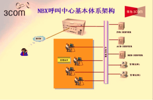 - 華為-3Com NBX采用數(shù)據(jù)包交換技術(shù),實現(xiàn)了語音與數(shù)據(jù)的融合。NBX呼叫中心系統(tǒng)平臺可以為客戶服務(wù)人員提供軟件和硬件的IP電話終端,用戶只需將坐席PC或IP話機接到桌面網(wǎng)口即可,無須重新部署語音線路,同時利用語音與數(shù)據(jù)融合的技術(shù)使得客服中心實現(xiàn)了統(tǒng)一的通信網(wǎng)絡(luò),減少的2套布線的繁瑣,大大降低了系統(tǒng)的維護及管理的工作量。