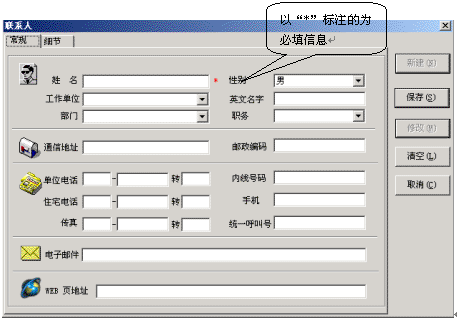 在地址簿中按鼠標右鍵,在彈出的菜單中選擇“新鍵地址簿記錄”選項,就會彈出新建聯(lián)系人對話框,在這里添入相應(yīng)的內(nèi)容,您的一個新用戶通訊錄就建立完畢了。