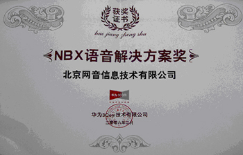 網(wǎng)音公司榮獲華為-3Com公司IP語(yǔ)音解決方案獎(jiǎng)