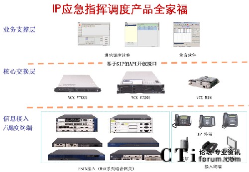 2、“呼叫控制層”指應(yīng)用解決方案的核心組件-軟交換平臺(tái)VCX V7000,VCX V7000特點(diǎn)如下: