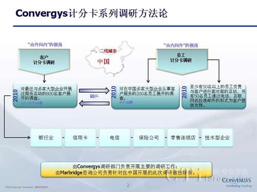 Convergys憑借對(duì)“新一代中國(guó)消費(fèi)者”的深入了解,協(xié)助其客戶(hù)向用戶(hù)提供卓越的服務(wù)體驗(yàn),提高客戶(hù)滿(mǎn)意度,獲得戰(zhàn)略?xún)?yōu)勢(shì)。今天,中國(guó)有超過(guò)80%的銀行使用Convergys智能解決方案來(lái)提高客戶(hù)保持率,實(shí)現(xiàn)商業(yè)成功。