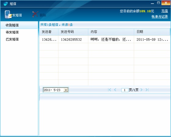 再看短信,點擊短信圖標,主屏自動彈出。收到短信、待發(fā)短信、已發(fā)短信分類明確;接收日期、發(fā)送者等信息清晰,便于查詢。