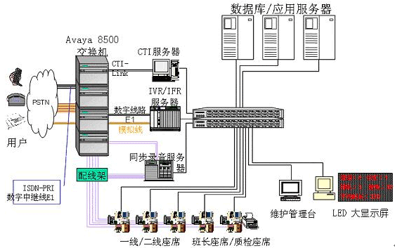 - 交換機/排隊機:選用AVAYA的S8500交換機作為前端排隊設備。