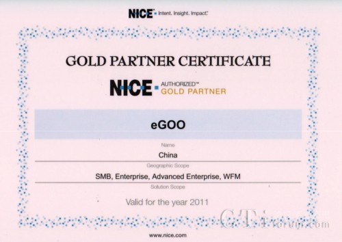 CTI論壇(ctiforum)4月19日報道(記者 潘婷婷):日前,易谷獲得由NICE頒發(fā)的“金牌合作伙伴”證書。