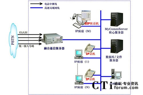 圖 1 MyComm 純 IP 電話與語音解決方案網(wǎng)絡結(jié)構示意圖