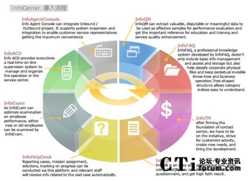 由于今日的客服中心已是多媒體的客服中心,不再只有單純的電話進(jìn)線,客戶尋求服務(wù)的管道更多樣化,InfoCenter Total Solution可以完全整合應(yīng)用程序、數(shù)據(jù)倉儲(chǔ)系統(tǒng)、多媒體溝通互動(dòng)管道,藉由不同的系統(tǒng)達(dá)到分析與處理客戶需求,并且達(dá)到一致性的工作流程管理,提供更高質(zhì)量的服務(wù)。