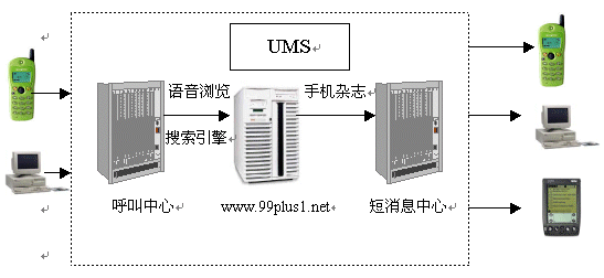 “99+1”統(tǒng)一消息網(wǎng)(以下簡稱“99+1”)是基于統(tǒng)一消息服務(wù)(UMS)平臺(tái),應(yīng)用呼叫中心服務(wù)方式,針對(duì)移動(dòng)用戶,以“99+1”網(wǎng)站為中心服務(wù)渠道,融合了先進(jìn)的語音合成和語音識(shí)別技術(shù),充分實(shí)現(xiàn)了話音、數(shù)據(jù)、短消息等全方位服務(wù)方式的綜合信息服務(wù)網(wǎng)絡(luò)。