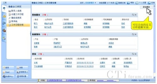同時(shí)為提高客服中心人員的工作效率,增加了“工作日程安排”功能,客服人員每天登陸系統(tǒng)后,可以第一時(shí)間查看到當(dāng)天要完成的各項(xiàng)工作;日程可以根據(jù)每位客服人員的需求類(lèi)別自由安排,創(chuàng)建不同的工作分類(lèi)和時(shí)間安排。