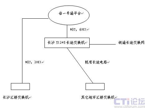 “一號通”業(yè)務平臺,相當于端局,通過NO.7鏈路、中繼電路與長沙鐵通長途局S1240連接,S1240將所有呼叫“一號通”號碼的電話,轉(zhuǎn)向“一號通”業(yè)務平臺,“一號通”的業(yè)務平臺,將按照用戶事先設定的電話和方式轉(zhuǎn)接電話。