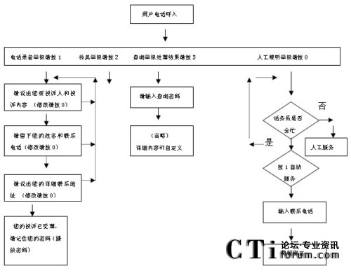 投訴人通過電話撥號(hào),進(jìn)入熱線系統(tǒng),在完成雙向交流后,系統(tǒng)自動(dòng)生成隨機(jī)專用密碼,告知投訴人。通過該密碼,投訴人可以隨時(shí)通過電話查詢受理部門對(duì)其投訴的受理反饋情況,受理職能部門可將受理反饋情況通過錄音及時(shí)提供給投訴人。
