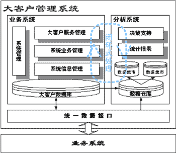 HollyAnalyzer是建立在大客戶信息平臺(tái)基礎(chǔ)上的針對(duì)業(yè)務(wù)主題、面向決策支持的系統(tǒng)。將數(shù)據(jù)倉庫的相關(guān)技術(shù)引入,利用數(shù)據(jù)分析系統(tǒng),從基于客戶數(shù)據(jù)及企業(yè)業(yè)務(wù)活動(dòng)的歷史記錄中提煉出有用的信息產(chǎn)生標(biāo)準(zhǔn)的查詢報(bào)告,進(jìn)行大客戶分析和市場營銷的輔助決策支持。分析主題主要針對(duì)客戶、競爭對(duì)手和營業(yè)及收入進(jìn)行分析,這些數(shù)據(jù)是企業(yè)非常關(guān)心的信息,有助于企業(yè)借助積累的歷史數(shù)據(jù),對(duì)其業(yè)務(wù)運(yùn)營狀況及營銷活動(dòng)成效做出正確的評(píng)價(jià),了解客戶行為及其趨向。