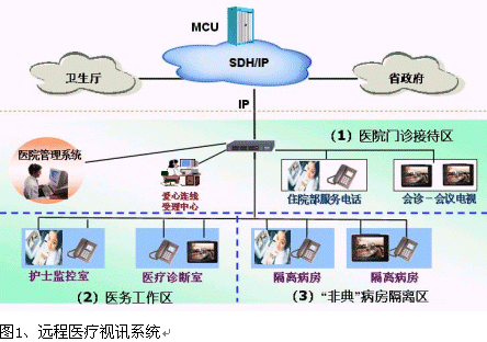 醫(yī)院通過視頻終端,對外推出遠程醫(yī)療。一來可以避免病人因為害怕到醫(yī)院就診而耽誤病情,同時也防止了人們到醫(yī)院受到不必要的感染。同時醫(yī)院還可以設立非典咨詢、診斷中心,人們可以直接撥通咨詢中心的視頻終端進行相關(guān)咨詢和對自己病情的確診。避免沒有病上醫(yī)院反而感染,也避免因為怕上醫(yī)院而耽誤非典的治療。