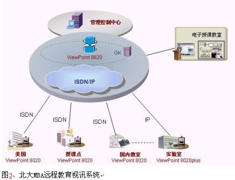北京大學是我國首批被確定開展現(xiàn)代遠程教育試點的院校之一,自1999年起至今,北京大學現(xiàn)代遠程教育已經(jīng)遍布全國18個省市,2002年北大MBA作為國內(nèi)先進的遠程教育項目作為一項重要的國際間的教育交流項目,欲通過建設視訊系統(tǒng)和美國互通,進行國際間的MBA遠程教學,同時可以進行幾個分點之間的交互式視頻會議,提高學習效率。