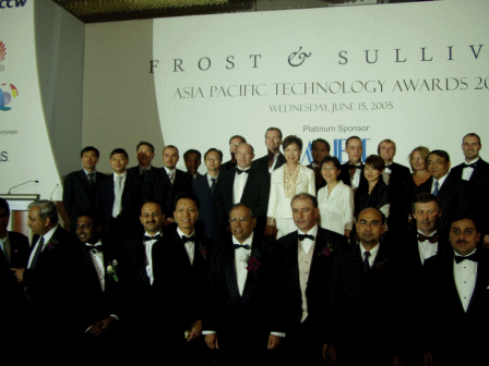 新加坡CommunicAsia2005展會期間,2005年6月15日晚—新加坡香格里拉飯店燈火輝煌,全球通信行業(yè)的精英公司濟濟一堂,共同見證了亞太地區(qū)一年一度的Frost & Sullivan亞太區(qū)技術大獎的頒獎禮的盛況。晚會期間共產(chǎn)生了6項運營商獎項和11項供應商獎項。