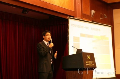 圖:華為軟件IPCC行銷總監(jiān)楊傳洪解讀一體化的IPCC平臺如何為客戶創(chuàng)造價值