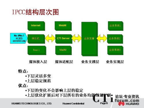 IPCC系統(tǒng)采用了獨(dú)立于各種接入媒體的設(shè)計(jì)結(jié)構(gòu),具有良好的開(kāi)放性和可擴(kuò)展性。系統(tǒng)采用業(yè)務(wù)和交換分離的設(shè)計(jì)思想,業(yè)務(wù)層及業(yè)務(wù)支撐層從傳統(tǒng)的網(wǎng)絡(luò)中分離出來(lái),使業(yè)務(wù)實(shí)現(xiàn)層也具有良好的開(kāi)放性和可擴(kuò)展性。