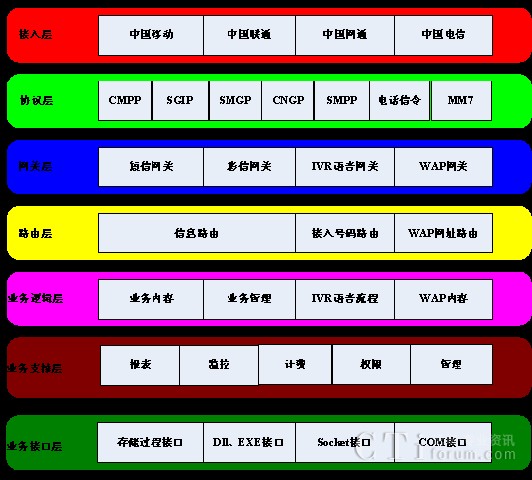 移動增值業(yè)務平臺是為各級運營商、各種企業(yè)提供多種新型無線應用的一整套增值業(yè)務平臺,基于平臺建立起具有豐富增值服務內(nèi)容的大規(guī)模業(yè)務處理的系統(tǒng)。移動增值業(yè)務平臺是一整套綜合性的無線業(yè)務提供平臺,融合了短信、彩信、IVR以及WAP業(yè)務,各業(yè)務間有機的銜接使其成為一個整體,對用戶提供無線全方位的服務,提升整體價值。