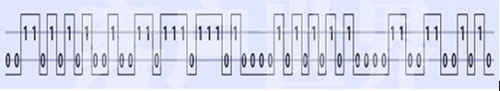 模擬信號的形成比較簡單、直觀,但在傳輸過程中容易受到外界干擾發(fā)生畸變,從而降低通信質量;數(shù)字通信是與模擬通信不同的另一種通信方式。數(shù)字信號的傳輸、記錄、處理都采用數(shù)字(“0”和“1”)信號。由于數(shù)字信號抗干擾強、生產(chǎn)的畸變小,也容易消除,因而可以大大提高通信質量。使用PCM(Pulse-Code Modulation)調(diào)制后的采樣聲波如下所示: