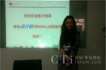 2012年3月16日作為“云計(jì)劃”第一期培訓(xùn)班在北京正式啟動,獲得了就職于各呼叫中心項(xiàng)目的易才博普奧一線坐席員工的廣泛關(guān)注和踴躍的報(bào)名。經(jīng)過“云計(jì)劃”入門培訓(xùn)資格的嚴(yán)格篩選,最終共有來自藝龍、樂淘、用友等項(xiàng)目的9名優(yōu)秀員工正式入圍,成為第一期“云計(jì)劃”成員。在今后的一段時(shí)間里同易才博普奧資深培訓(xùn)師一起學(xué)習(xí)一些列的專業(yè)課程,豐富自身在呼叫中心行業(yè)的專業(yè)知識,并走上易才博普奧構(gòu)建的職業(yè)晉升通道!