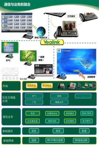 億聯(lián)專注于VoIP領(lǐng)域的發(fā)展,見證了整個終端發(fā)展過程:從由傳統(tǒng)的模擬/數(shù)字電話、IP語音電話、IP視頻話機,到多媒體信息終端階段。每前進一步,都擁有上一步的所有功能,并再延伸出更核心的應(yīng)用。