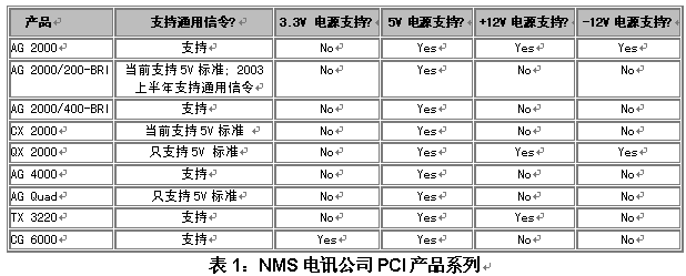 表1列出了當(dāng)前和即將推出的NMS板卡可支持的信令標(biāo)準(zhǔn),以及NMS板卡對主板電源輸入范圍的需求。