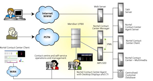 互聯(lián)網(wǎng)網(wǎng)址、PSTN、北電聯(lián)絡(luò)中心客戶端、WAN、Meridian1/PBX、聯(lián)絡(luò)中心和自助服務(wù)操作及管理、Web服務(wù)器、北電聯(lián)絡(luò)中心管理器、IPML、MPS500、帶桌面顯示器和CTI的北電聯(lián)絡(luò)中心座席、TAPI服務(wù)器、北電聯(lián)絡(luò)中心代理服務(wù)器、北電聯(lián)絡(luò)中心客戶端、北電聯(lián)絡(luò)中心—多媒體、中央客戶數(shù)據(jù)庫。