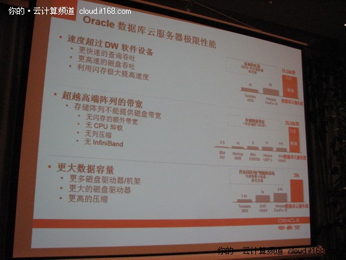 喻思成在介紹甲骨文在云計(jì)算產(chǎn)品的時(shí)候毫不掩飾對(duì)Oracle數(shù)據(jù)庫云服務(wù)器和Oracle中間件云服務(wù)器的贊譽(yù)。他說,甲骨文將這兩款產(chǎn)品稱之為“經(jīng)過預(yù)調(diào)測的系統(tǒng)”。它們均由硬件和軟件組成,硬件和軟件能以一種優(yōu)化的方式協(xié)調(diào)一致地運(yùn)行,并以一種預(yù)集成的工作狀態(tài)提供給客戶,因此具有極高的性能和效率,是數(shù)據(jù)庫的理想目標(biāo)平臺(tái),也是在中間層合并幾十或數(shù)百個(gè)應(yīng)用的理想目標(biāo)平臺(tái)。由于它們都是由甲骨文預(yù)集成和預(yù)配置的,因此也簡化了部署,能減少總的硬件量并降低環(huán)境復(fù)雜性,因此對(duì)客戶而言,其總體擁有成本更低。