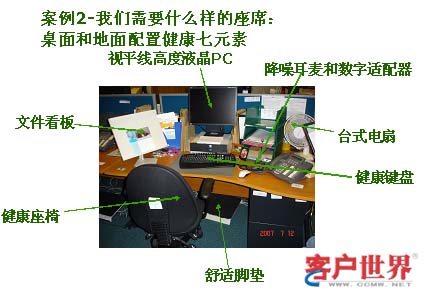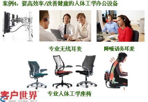 還有一個話題是健康座席怎么去配備,我主張七個元素,這個是在英國學(xué)到的,英國的話務(wù)員他們每個人都干到40歲,他們可以從20歲-40歲還沒有厭倦這個行業(yè)和崗位,他們認(rèn)為這個工作不是天天疲于應(yīng)付,或者說強(qiáng)度非常高而產(chǎn)生很大壓力的工作,他們很熱愛自己的工作,你看他們有很舒服的座椅,還有腳墊,女孩子如果注意保養(yǎng)自己身材的話,要經(jīng)常有機(jī)會站起來,保持一種站立狀態(tài)去工作,包括有一些電扇、健康的鼠標(biāo)、鍵盤、降噪耳機(jī),等等,包括視頻顯示液晶屏都可以讓客服代表享受輕松的工作感受,不會因為疲勞而產(chǎn)生厭倦,這種厭倦來的非常晚,當(dāng)一個員工在一個新的崗位工作超過一年以后,在他的厭倦感來臨之前我們已經(jīng)幫他調(diào)整好這種心態(tài)和適應(yīng)力,可能他的厭倦感會一直不來,這樣的話我們就可以很長時間保有一個有經(jīng)驗的優(yōu)秀客服代表,為公司節(jié)省很多成本,這樣的工作是非常舒服的。