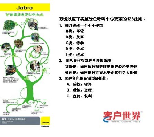 我之前在講綠色呼叫中心的時候,也是說通過這些觀察和一些提煉發(fā)現(xiàn)我們在真實(shí)生活中,如果從一些新的角度去看待我們現(xiàn)在的工作,其實(shí)就會發(fā)現(xiàn)環(huán)境可以在眾多的競爭對手中脫胎換骨成為跟別的呼叫中心不一樣的核心競爭力。