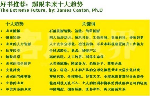 劉總(臺灣遠(yuǎn)東集團(tuán))很清楚,他是從臺灣過來的,臺灣有很多好書,我個人最喜歡是臺灣的誠品書店,每次去臺北都會去逛那個誠品書店,有很多新書,其中有一本關(guān)于未來十大趨勢的書,比如你會看到一些很新的詞匯,能源,長壽的醫(yī)學(xué),人如何活到120歲,這個在我們的年代可能就已經(jīng)實(shí)現(xiàn)了,包括你會看未來的氣候會如何變遷,然后我們未來中美關(guān)系是什么樣子的。這里面的討論對于我們來講,雖然跟我們個人生活關(guān)系并沒有巨大的影響,但是我們會想到一些我們可以比別人做得更快的、一些創(chuàng)新的東西。