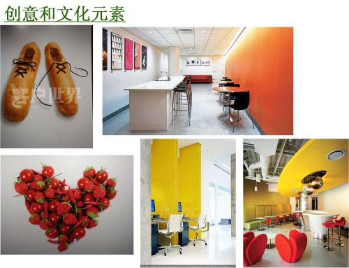 左下邊的這個圖是我自己非常喜歡的,就是在一個咖啡館里面,用一些番茄、一些小的辣椒和一些草莓搭成這樣一個形狀。上面大家看是鞋子,其實(shí)是兩塊面包把中間挖空了,鞋帶是巧克力,用這種方式來調(diào)動別人在咖啡館里面的食欲。我們在話房里面是一樣的,要讓客服代表,特別是那個年齡段20-25歲之間年輕的男孩子和女孩子們喜歡,甚至他們有一種重回學(xué)校的感覺都可以。所以這里面不用花太多的心思可以有很好的創(chuàng)意。在這個話房的設(shè)計當(dāng)中,覺得從環(huán)境的角度和自己能夠著手去改變的角度來看,已經(jīng)可以把你得話房做出自己的特色,就像我們在自己家里裝修一樣,可以有不同的色彩,也可以由不同的結(jié)構(gòu),當(dāng)然需要滿足公司給你預(yù)算的要求。