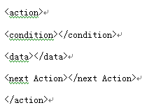 該節(jié)點(diǎn)的約束條件配置到節(jié)點(diǎn)中,當(dāng)前的數(shù)據(jù)和業(yè)務(wù)邏輯配置到[data]節(jié)點(diǎn)中,邏輯的跳轉(zhuǎn)[next Acton]定義著。這樣業(yè)務(wù),數(shù)據(jù),業(yè)務(wù)關(guān)系就通過這種方式串接起來。客戶端處理程序按照[condition]定義好的條件處理當(dāng)前[data]節(jié)點(diǎn)中的數(shù)據(jù)后得到一些新數(shù)據(jù)。