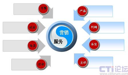 首先看一下服務(wù)營(yíng)銷(xiāo)的理念,有必要來(lái)溫故一下。在傳統(tǒng)的制造業(yè)中,即在工業(yè)經(jīng)濟(jì)的模式下,服務(wù)和營(yíng)銷(xiāo)是截然分割的,一般大家都認(rèn)為,營(yíng)銷(xiāo)在前,服務(wù)在后。服務(wù)有幾大特性,比如在購(gòu)買(mǎi)了產(chǎn)品后才會(huì)有相關(guān)的服務(wù),服務(wù)是無(wú)形的商品,企業(yè)建立的是售后服務(wù)體系。另外,大家都認(rèn)為服務(wù)沒(méi)有辦法進(jìn)行標(biāo)準(zhǔn)化,從這個(gè)角度說(shuō),大家一看到服務(wù),就會(huì)聯(lián)想:客服、成本、務(wù)虛、被動(dòng)等詞匯。服務(wù)體現(xiàn)的是一種理念,所以大家認(rèn)為比較虛。說(shuō)到服務(wù)是被動(dòng)的,實(shí)際是與營(yíng)銷(xiāo)相比,營(yíng)銷(xiāo)是比較主動(dòng)的。拿呼叫中心來(lái)說(shuō),客服人員坐在座位上,等待著客戶(hù)打來(lái)電話,而不能對(duì)電話進(jìn)行預(yù)測(cè),下一個(gè)小時(shí)會(huì)有多少呼入電話產(chǎn)生、投訴的內(nèi)容會(huì)有哪些、咨詢(xún)業(yè)務(wù)量會(huì)有多大,這些誰(shuí)也不能進(jìn)行準(zhǔn)確預(yù)測(cè),所以說(shuō)服務(wù)相對(duì)比較的被動(dòng)。再說(shuō)營(yíng)銷(xiāo),大家談營(yíng)銷(xiāo)時(shí),能想到的詞匯有:產(chǎn)品、利潤(rùn)、務(wù)實(shí)、主動(dòng)。因?yàn)闋I(yíng)銷(xiāo)是與產(chǎn)品掛鉤,營(yíng)銷(xiāo)又可以賺取利潤(rùn)。另外,之所以說(shuō)營(yíng)銷(xiāo)是務(wù)實(shí)的,因?yàn)闋I(yíng)銷(xiāo)是有指標(biāo)的,每個(gè)月要進(jìn)行考核。同樣如果從呼叫中心的角度談電銷(xiāo),它是一種主動(dòng)式的外呼。