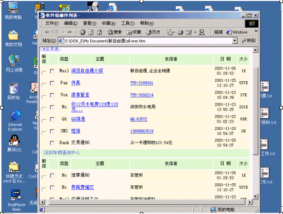 傳統(tǒng)郵件系統(tǒng)作為信息交換的手段在PC后的互聯(lián)網(wǎng)絡時代廣為運用,但是,郵件系統(tǒng)一個大的缺點是離不開電腦。CTI技術技術通過傳統(tǒng)的電話網(wǎng)絡傳遞語音信息。電話網(wǎng)具有廣泛普及,人人使用這一特點,這兩大技術的發(fā)展促使兩大技術的融合,那就是隨時隨地(anytime and anywhere)人們都可以通過電話,電腦使用郵件,訪問郵件。