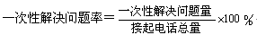 - 定義:一次性解決問題率是在某段統(tǒng)計時間內(nèi),不需要顧客再次撥入呼叫中心也不需要座席員將電話回撥或轉(zhuǎn)接就可以解決的電話量占座席員接起電話總量的百分比。