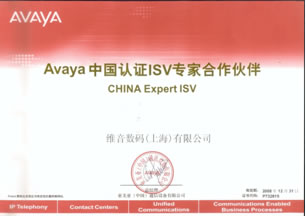 維音數(shù)碼被授權為AVAYA中國認證ISV專家合作伙伴