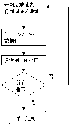 異地呼叫漫游到本地的異地機(jī)時(shí),異地發(fā)出的CAP CALL會(huì)送入本地發(fā)呼工作站,發(fā)呼工作站僅修改其目的地址,把它轉(zhuǎn)發(fā)給本地CNET由CNET送到編碼器編碼后送到發(fā)射機(jī)發(fā)射,完成呼叫過程。詳見流程5。