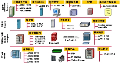 上海貝爾阿爾卡特提供完整的NGN解決方案,以軟交換為核心,綜合大容量綜合接入網(wǎng)關(guān),與PSTN互通的中繼網(wǎng)關(guān)TGW,適合寬帶用戶(以太網(wǎng),DSL或者HFC)接入的IAD或者IP電話,多媒體通信IP視頻終端等設(shè)備。方案提供了覆蓋所有接入方式的綜合業(yè)務(wù),既考慮了網(wǎng)絡(luò)的繼承,也滿足網(wǎng)絡(luò)演進(jìn)和發(fā)展的需要。
