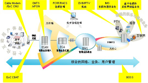 新興的融合業(yè)務特別是基于視頻的多媒體業(yè)務將是廣電在三網(wǎng)融合的大潮中抓住機遇,吸引更多用戶,提高網(wǎng)絡盈利能力的重要基石。從原來單向廣播接入網(wǎng)向雙向、大帶寬的接入網(wǎng)演進。作為寬帶接入市場的領導者,我們提供基于廣電同軸電纜網(wǎng)絡特性的完整接入解決方案,實現(xiàn)從光纖到小區(qū)、光纖到樓、光纖到戶等各種接入方式,滿足各種場景的需求。