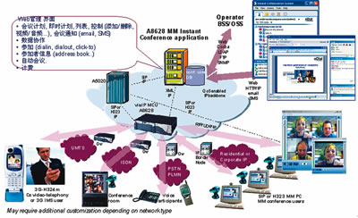 針對這個廣大企業(yè)面臨的難題,上海貝爾阿爾卡特推出了多媒體協(xié)同會議系統(tǒng),為電信運(yùn)營商帶來了巨大的商機(jī)。多媒體協(xié)同會議系統(tǒng)(MultiMediaInstantConferencing,以下簡稱MMIC)能實(shí)現(xiàn)語音、數(shù)據(jù)和視頻的協(xié)同工作,使身處異地的人們可以在同一時間合作解決同一個問題。借助多樣化的接入手段,MMIC為用戶提供了集成語音、視頻、數(shù)據(jù)、即時消息、Presence等強(qiáng)大功能的多媒體會議業(yè)務(wù)。同時,它完全基于WEB瀏覽器的方式,實(shí)現(xiàn)了終端的無關(guān)性、位置的無關(guān)性,從而利用智能化的通信手段,為運(yùn)營商、企業(yè)節(jié)省了大量投資。