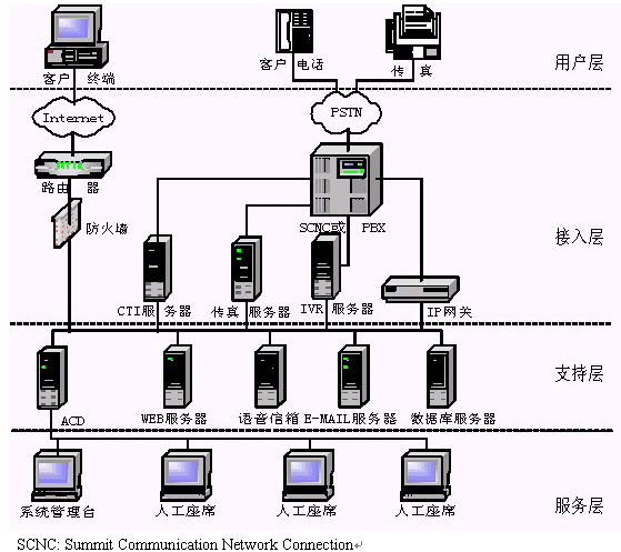 提供Internet接入的接口。采用Internet技術(shù),實(shí)現(xiàn)與客戶之間的交互式文本交談、IP語音交談,提供網(wǎng)頁連接/傳送接口。