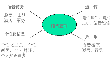 在中國(guó),電話有著最廣泛的用戶群;追求方便時(shí)尚,希望使用互聯(lián)網(wǎng)信息、郵件而不懂或不熟悉鍵盤操作的用戶占4/5;語(yǔ)音互聯(lián)網(wǎng)是電話網(wǎng)與互聯(lián)網(wǎng)的完美結(jié)合,通過(guò)語(yǔ)音互聯(lián),普通電話用戶用自然語(yǔ)言對(duì)話的方式即可獲取互聯(lián)網(wǎng)的主要服務(wù),滿足用戶任何時(shí)間、任何地點(diǎn)、任何設(shè)備獲取信息的需求。在美國(guó)、日本,語(yǔ)音互聯(lián)已成為簡(jiǎn)易終端接入互聯(lián)網(wǎng)的主要方式之一。
