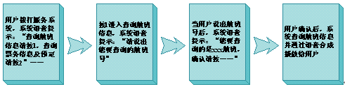 - 航班信息查詢(xún)是航空語(yǔ)音服務(wù)系統(tǒng)可加載的業(yè)務(wù)之一,還可以同時(shí)加載例如票務(wù)查詢(xún)與預(yù)定等業(yè)務(wù),在用戶(hù)通過(guò)語(yǔ)音預(yù)定后,可以選擇將票務(wù)信息通過(guò)短信或彩信發(fā)到手機(jī)上,從而實(shí)現(xiàn)電子訂票功能,減少了服務(wù)成本;
