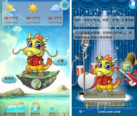 聰明、善解人意的小唐龍基于開放的Android操作系統(tǒng),在捷通華聲全球首個全方位智能人機交互(HCI)感知云-靈云平臺的支持下,會學習,善思考,能說會聽,能寫會識。此次正式發(fā)布的小唐龍界面更加清新亮麗,令人耳目一新;獨一無二的語音與手寫全方位人機交互,讓用戶在任何情況下都可以無障礙的使用小唐龍;重新構建設計的音樂播放的界面,增加歌詞顯示功能,讓用戶隨心所欲的添加、刪除、選擇、演唱歌曲;新聞播報清晰自然,流暢動聽,新聞內容更加豐富,讓天下大事隨時都掌握在用戶手中;地圖查詢實現全國范圍方便快捷的導航、公交查詢、餐飲服務;全國地區(qū)天氣預報等功能的完善,給用戶的生活帶來的極大的便利。全新小唐龍讓手機助手之名更加名副其實!