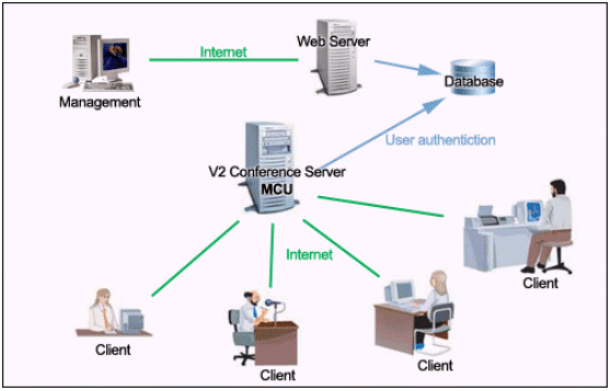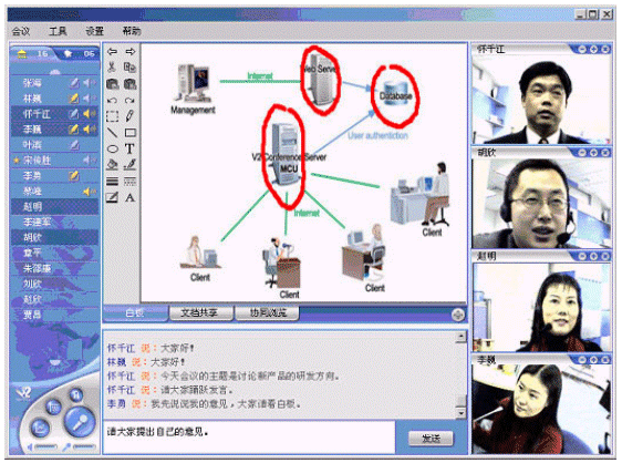 V2 Conference可以利用普通的PC機、標準的視頻攝像頭、耳機和麥克風,通過Internet或者是局域網(wǎng)進行會議。與傳統(tǒng)的需要專用的服務(wù)器和硬件支持的視頻會議相比,企業(yè)無需投入高昂的成本,就可以實現(xiàn)高質(zhì)量的遠程會議。同時,V2 Conference還提供了遠程會議管理的功能。