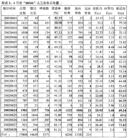 6月份"88066"人工業(yè)務(wù)話務(wù)量見(jiàn)附表2。