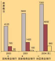 截至2000年底,銀行業(yè)呼叫中心市場總規(guī)模為25億元,座席總數(shù)量為5000個左右。銀行業(yè)的呼叫中心增長速度是非?斓,尤其是從1999年到2000年間,銀行業(yè)的呼叫中心市場規(guī)模迅速擴大。到2000年底,銀行業(yè)呼叫中心的市場規(guī)模約占整個呼叫中心市場的30%。目前國家級國有銀行的呼叫中心座席數(shù)約占本行業(yè)的82%,是市場的絕對主體。