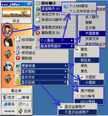 用申請時的用戶名及密碼登錄后(咦~~你會發(fā)現其主界面與QQ差不多哦),你可對自己的DICO進行常規(guī)性設置(下圖3)。